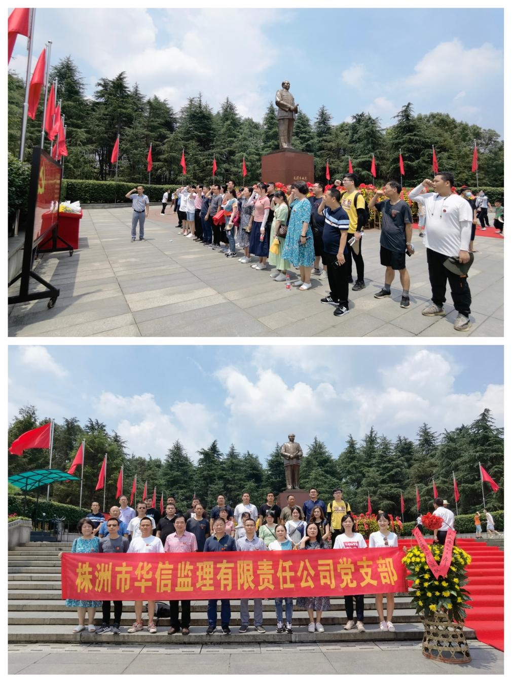 為慶祝中國(guó)共產(chǎn)黨成立101周年,7月1日,中共株洲市華信監(jiān)理有限責(zé)任公司黨支部組織全體黨員、預(yù)備黨員、入黨積極分子以及部分群眾赴韶山開(kāi)展“緬懷偉人故里,傳承紅色基因”主題黨日活動(dòng)。重溫黨的歷史、追尋偉人足跡,近距離接受黨性錘煉和革命傳統(tǒng)教育,激勵(lì)大家進(jìn)一步堅(jiān)定理想信念,提高黨性修養(yǎng),強(qiáng)化責(zé)任擔(dān)當(dāng),引導(dǎo)廣大黨員干部“不忘初心、牢記使命”。